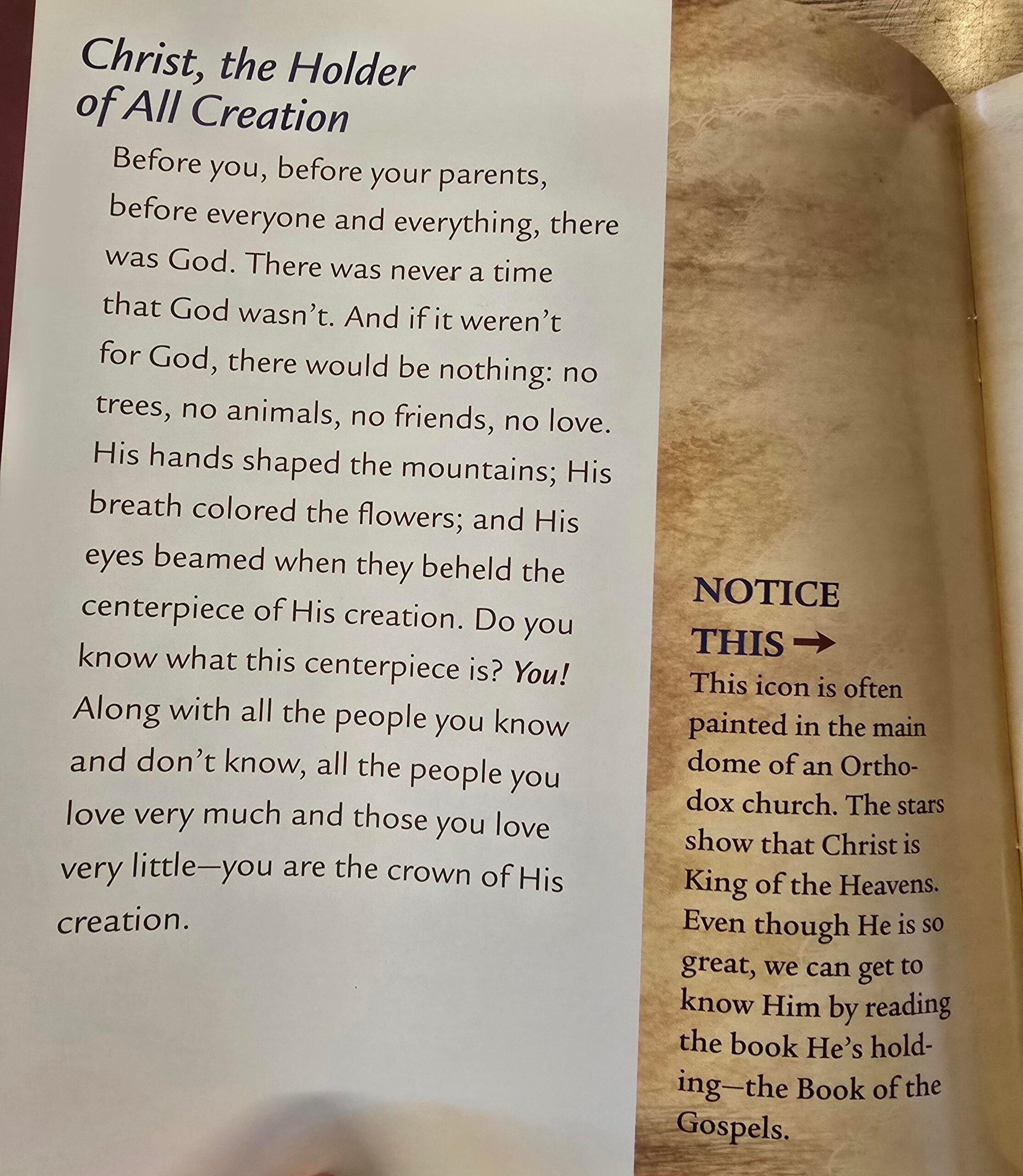 When the Son of God came down from heaven to become a man like us, He made it possible for us to see Him, touch Him, and make pictures of Him pictures which we call icons. This little book brings God and His saints vividly into children’s lives through icons, explaining in the simplest terms what each icon means and what the role of these holy pictures and the holy stories and people they depict can be in our lives. The colorful pages of Pictures of God are perfect for occupying little hands in church, for explaining the world of icons in the first years of Sunday school, and for read-aloud time with little ones at home.